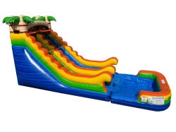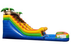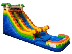 The 16-foot wet/dry water slide with Detachable Pool is an inflatable slide built for big fun at indoor or warm outdoor events. Riders climb to a No-Jump Top for safe sliding, race down a wide, slick lane, and splash into an oversized pool with safety ends. The detachable pool makes switching between dry and wet use quick and easy, while bright colors make it a standout at any party.